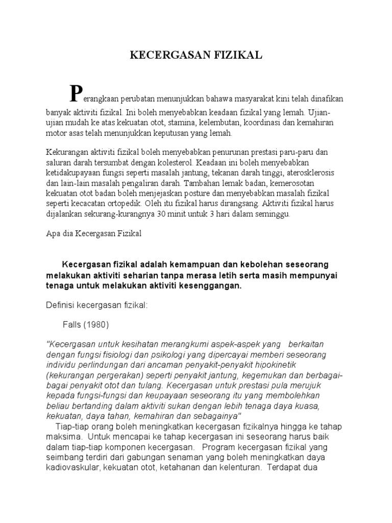 Sila rujuk tarikh Peperiksaan awam meliputi UPSR PT3 dan SPM di Jadual Peperiksaan. KEPENTINGAN KECERGASAN FIZIKAL Orang yang mempunyai kecergasan fizikal yang tinggi bukan sahaja mempunyai badan yang sihat malah sanggup menerima cabaran fizikal dalam aktiviti harianSebaliknya orang yang mempunyai tahap kecergasan fizikal yang rendah adalah tidak tabah dan tidak berani menerima cabaran fizikal kerana cepat berasa letih dan. Penutup Karangan Kepentingan gaya hidup sihat.