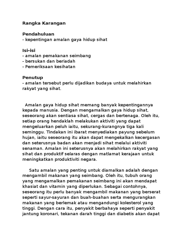 Contoh Karangan Gaya Hidup Sihat Pdf